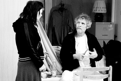 Csak a jelenlét érdekli, minden mást kihúz a lábad alól. Ha nem tudsz ott helyben létezni, nem éred el a megfelelő érzékenységi fokot anélkül, hogy kicsit is játszanál - nem enged ki. Ez a legnehezebb. Nem játszhatsz el semmit, de minden érződjön. Amíg nem stimmel minden apró belső rezdülésed, amíg kicsit kilógsz, kiszúrja és újravesszük. Hiába mondja az operatőr, hogy képileg tökéletes. Ő azt mondja, nem jó, nem tudja, hogyan csináld, de ez így nem jó. Amíg nincs a helyén minden ecsetvonás, nincs menekvés. Minden forgatásba belepusztulunk. De Béla is. Iszonyatos nehéz vele dolgozni, de minden perc megéri. Maga a költészet, ahogy a filmjeit megálmodja.