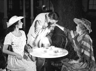 Igyekezetben nem is volt hiány, csak hát míg Shakespeare egyebek közt nyelvi költészettel is megtámogatta nézői képzeletét, ezt az előadást nem arra találták ki, hogy a szöveg megálljon a maga lábán, sőt pótolja a látványt, meg sokszor az illúziókeltő színészi játékot is. Fráter Zoltán Krúdy művének és életének egy-egy epizódját állítja párhuzamba. Hol Szindbád, hol írója kóvályog-szédeleg-őrlődik két nő között. Szindbád egy testvérpárral, Krúdy egy anyával és lányával küszködik. Szindbád elmenekül a rajongó és rajongott nők elől, Krúdy a lányt feleségül veszi. Az eredmény azonban nem igazán különböző. A rajongások, fellobbanások így is, úgy is elhamvadnak, kihunynak, a boldogság megfoghatatlan marad, a magány végtére is feloldhatatlan. Igazi szép krúdys giccs kerekedhetett volna belőle a Ladics-ház kertjében. Vagy talán még a művházban is, ha legalább a világítás működik, ha nem mindig ugyanaz a fény borítja az egész színpadot. Ha - legalábbis így gondolom a sok kis különálló enteriőrből komponált díszlet alapján - egy-egy jelenetet intim megvilágítás emel ki a háttérből, ha az egyes találkozásokat, párbeszédeket érzelmes homály, vagy éppen éles, vakító világosság különíti el a másiktól. Ezzel talán még az eredetileg elgondolt helyszín adottságait is nagyrészt pótolni lehetett volna. De mindenképpen el lehetett volna tüntetni a művelődési otthon gyűlésekre és ünnepségekre készült rideg színpadát. Így azonban nem lehetett. Bizonyos lámpácskák csak az előadás előtti kísérletezések során villantak föl, s bizonyára nem megfelelően, ezért nem is próbálták őket később működtetni.